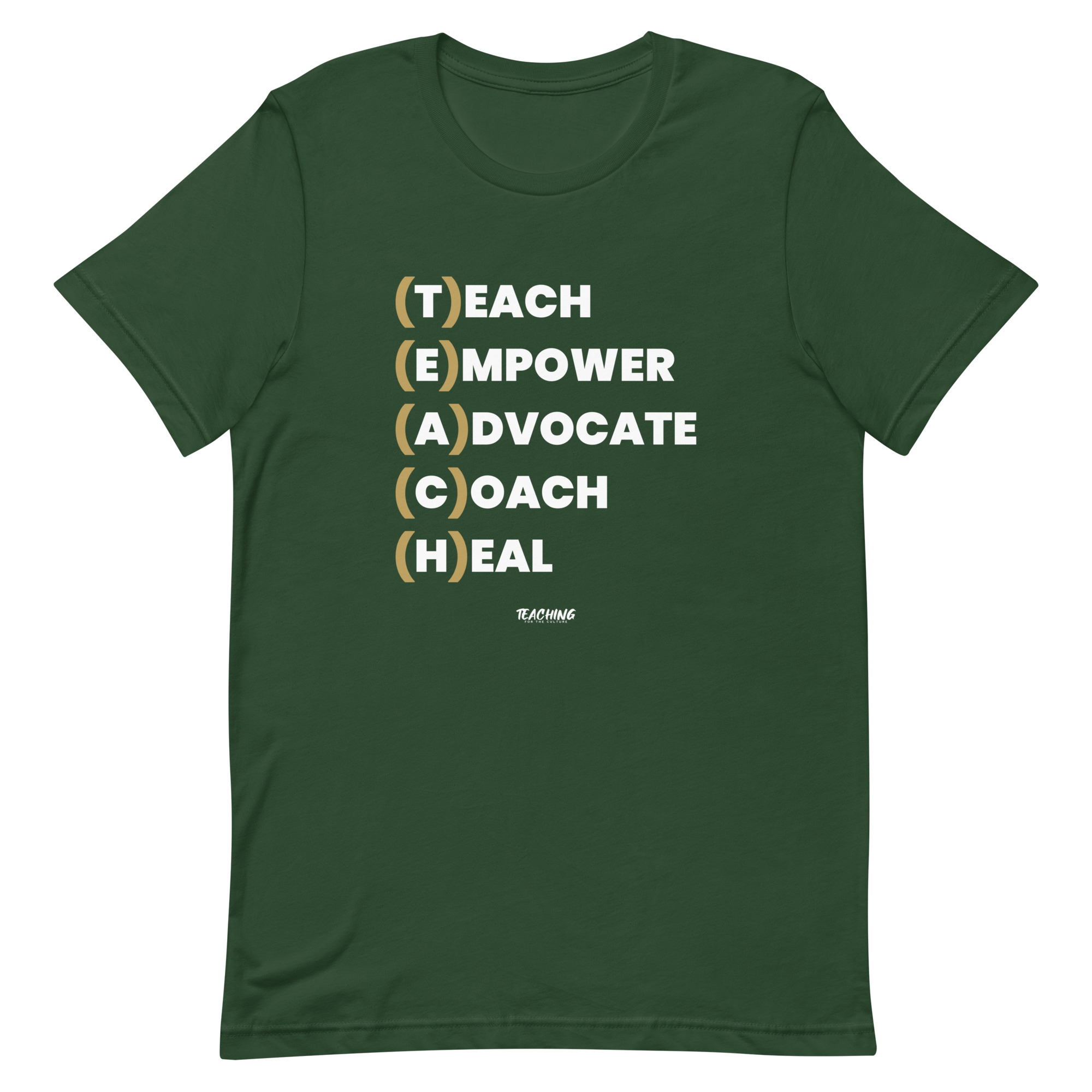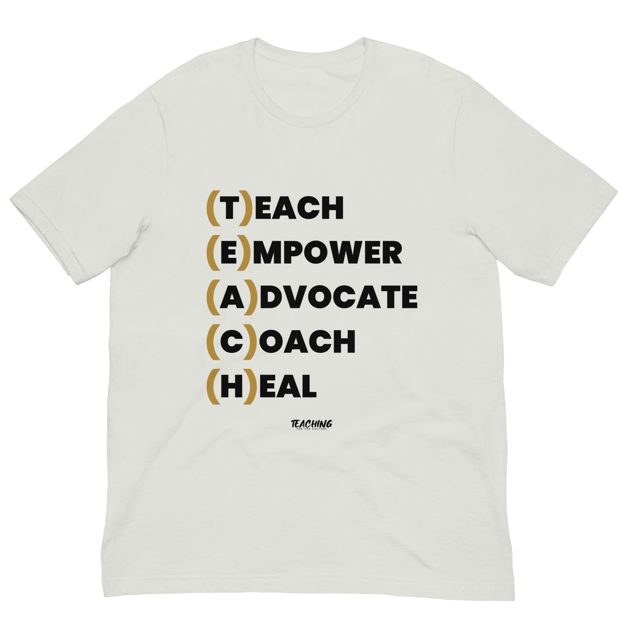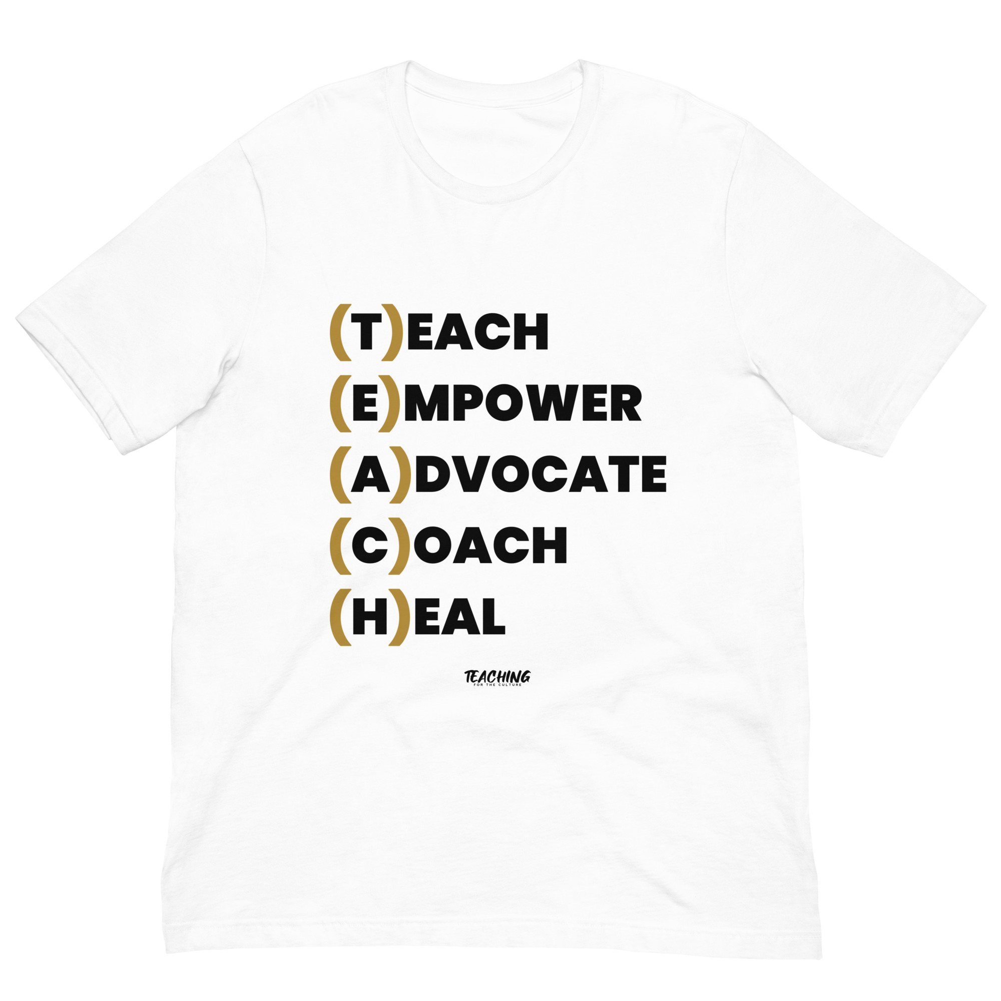 Representing the mission to Teach, Empower, Advocate, Coach, and Heal, this design embodies the heart of every changemaker, educator, and leader determined to make an impact.
